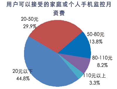 目前的資費標準與用戶20元以下的資費期望值存在很大差距,如果個人或家庭用戶的資費可以降低到20-50元,手機視頻監(jiān)控服務(wù)將可以被大多數(shù)用戶所接受。