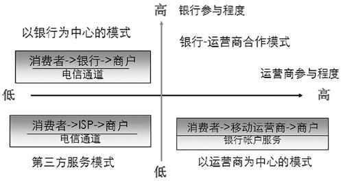 系統(tǒng),通過定制終端,電信運營商可以將各種先進(jìn)的移動應(yīng)用提供給用戶,使用戶獲得良好的移動化生活體驗。因此,電信運營商在移動支付方面具有較好的用戶資源和營銷渠道。可見,電信運營商和銀行的協(xié)作程度在很大程度上決定了移動支付商業(yè)模式的績效水平。