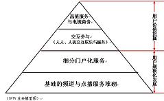 擁有4億多注冊用戶的騰訊,占有中國即時(shí)通信80%的市場份額,互聯(lián)網(wǎng)行業(yè)贏家通吃的定律顯露無疑,騰訊在海量用戶群基礎(chǔ)上開發(fā)的各種業(yè)務(wù)都在行業(yè)排名前列。當(dāng)電視服務(wù)的規(guī)模用戶群得以穩(wěn)固,基于用戶規(guī)模之上的多元化服務(wù)集成成為可能,對電視服務(wù)形成高度依賴的用戶群具備了價(jià)值挖掘的條件。人人交互、人機(jī)交互依托基礎(chǔ)的電視分眾門戶化應(yīng)用,形成了最初的用戶使用習(xí)慣;依托電視分眾門戶化集成的積累,建立用戶識別、用戶分析、收視分析、用戶數(shù)據(jù)交換的技術(shù)體系,用以支撐未來多元化娛樂與服務(wù)的開發(fā);贗PTV的交互能力,依托電視終端的易用性與舒適性,用戶價(jià)值、終端價(jià)值被充分挖掘,電視服務(wù)開始對其他媒介形式(含互聯(lián)網(wǎng))的用戶形成吸納。圍繞交互、商務(wù)需求的電子貨幣體系逐漸完善,電視進(jìn)入可有效運(yùn)營、可便捷支付的良性的產(chǎn)業(yè)循環(huán),IPTV多元化業(yè)務(wù)之門打開。