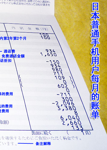 到底在購(gòu)買各種套餐之后,用戶每個(gè)月使用多少錢呢?下面是一份普通的日本手機(jī)用戶每個(gè)月收到的賬單,通過這份賬單我們清晰看出3G資費(fèi)的構(gòu)成。在這里,我們清晰看到?jīng)]有漫游費(fèi),如果沒有折扣,該用戶至少需要付近3萬(wàn)日元的費(fèi)用,實(shí)際上,最后用戶需要繳納的費(fèi)用是6064日元,其中還包含了購(gòu)買新款手機(jī)3380日元的費(fèi)用,實(shí)際上產(chǎn)生的話費(fèi)是2660日元。