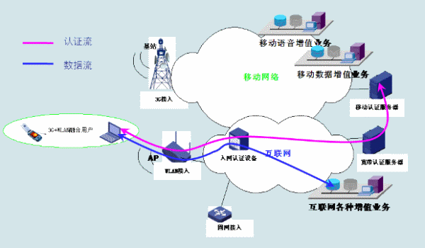 在WLAN與3G沒有融合之前,從WLAN接入的用戶只能訪問互聯(lián)網(wǎng)上的服務(wù),不能進(jìn)入移動網(wǎng)絡(luò)的封閉花園。在這種融合程度下,用戶一邊可以用WLAN高速上網(wǎng),一邊可以收彩信了。另外,隨著融合的深入,可以逐漸做到WLAN和3G兩種接入技術(shù)的無縫切換,從而保證業(yè)務(wù)的連續(xù)性。
