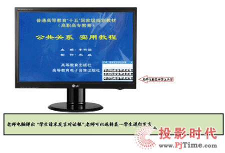 授課教室內(nèi)如果教師在講課,畫面自動(dòng)切換到教師,如果教師在使用電腦則自動(dòng)切換到電腦,如果教師讓某學(xué)生發(fā)言,則切換到學(xué)生畫面。