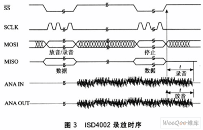 器件便從00地址開始錄音,一直到出現(xiàn)OVF(存儲器末尾)時,錄音停止。其工作時序如圖3所示。