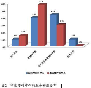 印度的呼叫中心可分為兩類:一類面向國際市場,另一類服務本國市場。如班加羅爾等6個城市的60家呼叫中心中,74%(44家)專門服務于國際市場,26%(16家)服務于本國市場。