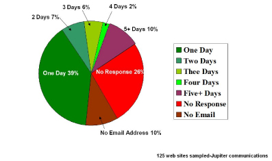 該報告進一步總結(jié)到,60%的網(wǎng)站客戶希望更多互動但許多電子商務企業(yè)無法回應電子郵件且不能提供足夠的電話支持。也有很多電子商務企業(yè)提供電子郵件支持,比如說etoys,但對于如潮水般洶涌而來的電子郵件聯(lián)絡(luò)他們顯然沒有什么準備以至于處理結(jié)果符合客戶預期的郵件少之又少。如果處理的好