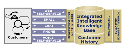 Technologies”是一家非常著名的多接觸點呼叫中心供應商,這家公司建議采用“通用事故”追蹤機制,它強調(diào)報表和歷史紀錄必須作為任何一個多接觸點聯(lián)絡(luò)中心不可或缺的組成部分!癛ightnow”提供的以下插圖很清楚地向我們展示了多渠道知識庫集成是如何被強制執(zhí)行的。