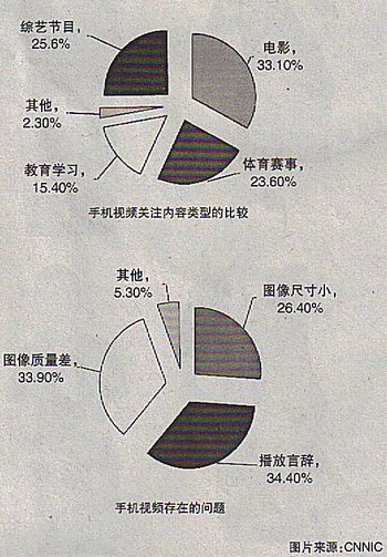 終端是影響手機視頻業(yè)務發(fā)展的重要因素之一,手機視頻業(yè)務的發(fā)展對終端提出了更高的要求。手機視頻的實現(xiàn)方式可以分為兩種,一種是本地視頻業(yè)務,一種是在線視頻業(yè)務。本地視頻業(yè)務指的是通過手機將視頻內(nèi)容下載到手機上觀看,而在線視頻業(yè)務則是通過手機連接移動互聯(lián)網(wǎng),借助視頻播放器實時在線觀看視頻內(nèi)容。這兩種方式都決定了終端將成為影響手機視頻業(yè)務體驗的重要因素,尤其是在線視頻的方式,手機的處理能力將直接影響到視頻的播放速度,同時,手機的屏幕大小和屏幕分辨率也將影響用戶的觀看體驗。