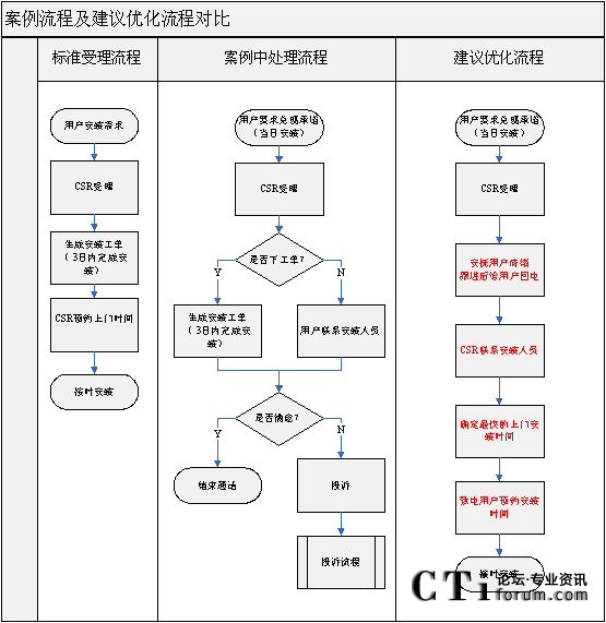 通過(guò)對(duì)比,很明顯后者減少了流程中的關(guān)鍵角色,提高了流程的執(zhí)行效率。CSR直接為用戶提供了“一站式服務(wù)”,用戶只需要通過(guò)一個(gè)電話便能解決問題,而至于CSR與安裝人員的工作協(xié)調(diào),完全不需要用戶去介入。