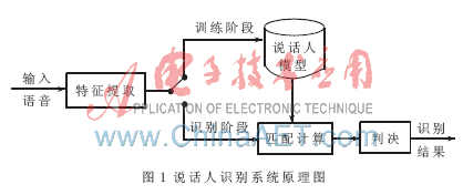 說話人識別又被稱為話者識別,是指通過對說話人語音信號的分析處理,自動確認(rèn)說話人是否在所記錄的話者集合中,以及進(jìn)一步確認(rèn)說話人的身份。說話人識別的基本原理如圖1所示。