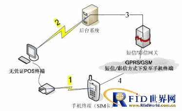 第3步:后臺(tái)系統(tǒng)將用戶刷卡信息處理生成憑證信息之后將此憑證信息發(fā)送給短信/彩信網(wǎng)關(guān)(此憑證信息形式可以為經(jīng)過(guò)加密了的短信或彩信,也可以為二維碼等可以驗(yàn)證的形式)。