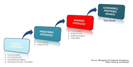 目前多數(shù)電信企業(yè)提供的都是‘隨機’體驗。隨機體驗是各種不連續(xù)端到端體驗的集合體。它發(fā)生在整體客戶體驗未得到恰當管理或企業(yè)漠視客戶與員工的情況下。最終這將導致品牌走向墮落以及丟失有價值的客戶、利潤和企業(yè)價值。如果企業(yè)不想如上所述這樣慘淡收場,那么他們至少要做到創(chuàng)造和交付一種可預測的體驗——連續(xù)且有意向的(見圖1)。