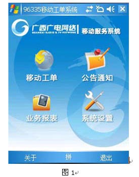 移動工單系統(tǒng)是數(shù)字電視客戶呼叫中心平臺系統(tǒng)的延伸,它結(jié)合最新的網(wǎng)絡(luò)移動技術(shù),實(shí)現(xiàn)數(shù)字電視服務(wù)工單分派業(yè)務(wù)的自動流轉(zhuǎn)和實(shí)時流轉(zhuǎn),各地市維護(hù)站的服務(wù)工作人員通過智能手機(jī)終端,實(shí)時獲取工作任務(wù)、計(jì)劃安排,進(jìn)行業(yè)務(wù)處理,通過移動網(wǎng)絡(luò)查詢客戶信息、查詢用戶產(chǎn)品訂購資料,上報處理結(jié)果和用戶反饋信息,通過移動網(wǎng)絡(luò)提交到管理部門,管理層能及時的掌握服務(wù)進(jìn)展情況,并能隨時做出決策和指揮,真正實(shí)現(xiàn)對用戶最快速、有效的服務(wù)需求響應(yīng),保證了服務(wù)質(zhì)量和用戶滿意度,提升了數(shù)字電視的服務(wù)水平與服務(wù)檔次。其界面如圖1所示。