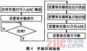 、坶_始識別。設(shè)置幾個相關(guān)的寄存器,即可開始語音的識別。圖4是相關(guān)的流程。ADC通道即為麥克風輸入通道,ADC增益也就是麥克風音量,可設(shè)定值00H~7FH,建議設(shè)置值為40H~6FH,值越大代表MIC音量越大,識別啟動越敏感,但可能帶來更多誤識別;值越小代表MIC音量越小,需要近距離說話才能啟動識別功能,好處是對遠處的干擾語音沒有反應。本文中設(shè)定值為43H。