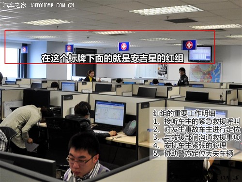 據(jù)了解。在這個(gè)呼叫中心里共分兩個(gè)比較大的職能部門(mén),一個(gè)就是真正意義上的呼叫中心,也就剛才說(shuō)的服務(wù)顧問(wèn)所在的部門(mén);第二個(gè)就是IT技術(shù)部門(mén),他們的工作就是保證安吉星系統(tǒng)7×24小時(shí)×365天不間斷的提供服務(wù),并且收集客戶的疑問(wèn)進(jìn)行業(yè)務(wù)和系統(tǒng)方面的修改。