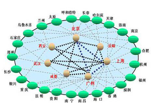 網(wǎng)絡(luò)扁平化概念就適時(shí)提出來了,F(xiàn)在,網(wǎng)絡(luò)扁平化已經(jīng)是運(yùn)營(yíng)商網(wǎng)絡(luò)建設(shè)的主要指導(dǎo)思想了。特別是中國(guó)聯(lián)通,由于歷史原因造成的骨干網(wǎng)節(jié)點(diǎn)并不夠多導(dǎo)致其南北方網(wǎng)絡(luò)品質(zhì)存在一定差異。而扁平化后能很好的解決此問題。下圖為網(wǎng)絡(luò)扁平化示意圖。