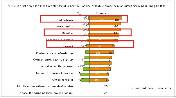 最后,同時(shí)也是最重要的,智能管道可以幫助運(yùn)營商提高用戶滿意度并鎖定高端用戶。愛立信消費(fèi)者研究室針對(duì)終端用戶做過詳實(shí)的統(tǒng)計(jì)調(diào)查,結(jié)果顯示,對(duì)用戶滿意度影響較大的前5項(xiàng)因素分別是網(wǎng)絡(luò)容量、網(wǎng)絡(luò)覆蓋、業(yè)務(wù)可靠性、業(yè)務(wù)易用性和價(jià)格,參見下圖。