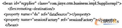 業(yè)務層對象用于實現(xiàn)CRM系統(tǒng)業(yè)務方法,其采用面向接口設(shè)計原則,由Spring管理實現(xiàn)類對象,并注入持久層的HibernateSessionFactory對象,業(yè)務對象配置代碼如下: