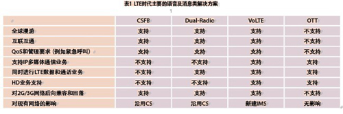 - LTE時(shí)代主要的語音解決方案及其比較;