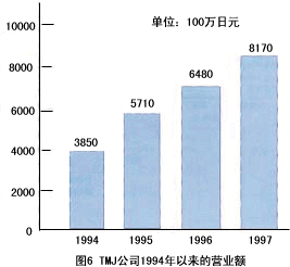 ——該公司成立于1992年,現(xiàn)在是日來(lái)第4大電話營(yíng)銷(xiāo)專(zhuān)業(yè)公司。該公司是從原福武書(shū)店的電話中心獨(dú)立出來(lái)的。福武書(shū)店的”進(jìn)研學(xué)習(xí)會(huì)”(類(lèi)似于中國(guó)的函授大學(xué))在日本全國(guó)擁有401萬(wàn)會(huì)員。對(duì)這些會(huì)員的客戶服務(wù)目前占TMJ業(yè)務(wù)的50%,盡管TMJ成立時(shí)間不長(zhǎng)。但由于積極引進(jìn)先進(jìn)技術(shù)(CTI,IVR,ACD,預(yù)撥號(hào))和先進(jìn)的管理方式,發(fā)展非常迅猛。1997年?duì)I業(yè)額達(dá)到81億7千萬(wàn)日元,總席位有1,500個(gè),外線數(shù)3,00O條,登錄業(yè)務(wù)代表達(dá)4,350人,該公司擁有6個(gè)呼叫中心(東京3個(gè),大販、名古屋、岡山各1個(gè)),每月平均呼入電話63萬(wàn)個(gè),呼出電話60萬(wàn)個(gè)。該公司的主要業(yè)務(wù)有:訂購(gòu)、預(yù)約受理、促銷(xiāo)活動(dòng)、銷(xiāo)售支持、客戶服務(wù)中心,其中面向消費(fèi)者/面向企業(yè)的比例為4∶1。圖6為T(mén)MJ公司1994年以來(lái)的營(yíng)業(yè)額。