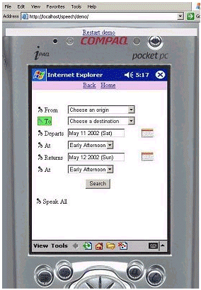 但是在此次會議上也出現(xiàn)了不同的動向。美國IBM展出了依據(jù)“XHTML+Voice Profile 1.0”標準、可在安裝“Pocket PC”的PDA上運行的多模型Web應(yīng)用,其中“XHTML+Voice Profile 1.0”采用了部分VoiceXML標準。展示負責(zé)人再次強調(diào)指出:“IBM只使用業(yè)界標準”。而微軟則表示將于2002年夏季“準備向某些業(yè)界標準化團體遞交SALT提案”。