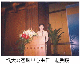 一汽大眾客服中心主任趙荊璞由于其在客戶服務(wù)方面的杰出貢獻(xiàn)被評為"2005中國最佳呼叫中心管理人",并作為獲獎(jiǎng)代表在大會上發(fā)了言。?