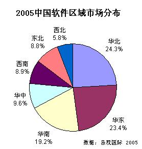 2005中國軟件區(qū)域市場分布圖