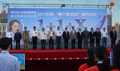 9月5日,“銀川市‘1+1+X’便民電話(huà)服務(wù)工程啟動(dòng)暨便民電話(huà)服務(wù)卡首發(fā)儀式”在銀川市光明廣場(chǎng)隆重舉行。銀川市市長(zhǎng)白雪山,寧夏自治區(qū)電信總公司總經(jīng)理馬林峰等出席了啟動(dòng)儀式。