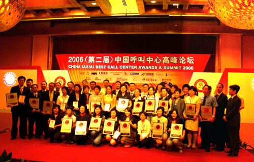 2006年9月19日,上海。2006(第二屆)中國(guó)呼叫中心高峰論壇暨2006年中國(guó)(亞太)最佳呼叫中心評(píng)選頒獎(jiǎng)典禮今天在上海舉行;本屆會(huì)議由亞太地區(qū)包括中國(guó)、臺(tái)灣、香港、新加坡、馬來(lái)西亞、日本和韓國(guó)等7個(gè)國(guó)家和地區(qū)的呼叫中心行業(yè)協(xié)會(huì)共同主辦,第一次聯(lián)合在中國(guó)大陸舉行。作為亞太地區(qū)呼叫中心領(lǐng)域最高規(guī)格的年度大會(huì)及行業(yè)評(píng)選頒獎(jiǎng)活動(dòng),今年的會(huì)議主題確定為:“中國(guó)呼叫中心的體系化管理及亞太呼叫中心市場(chǎng)的機(jī)會(huì)”。來(lái)自通信、銀行、保險(xiǎn)、IT、電子、制造等行業(yè)的20余家呼叫中心運(yùn)營(yíng)機(jī)構(gòu)分獲最佳企業(yè)自建、最佳專業(yè)外包、最佳呼入服務(wù)、最佳呼出服務(wù)、最佳技術(shù)支持、最佳新建及最佳全國(guó)性呼叫中心管理團(tuán)隊(duì)等各專業(yè)獎(jiǎng)項(xiàng)。