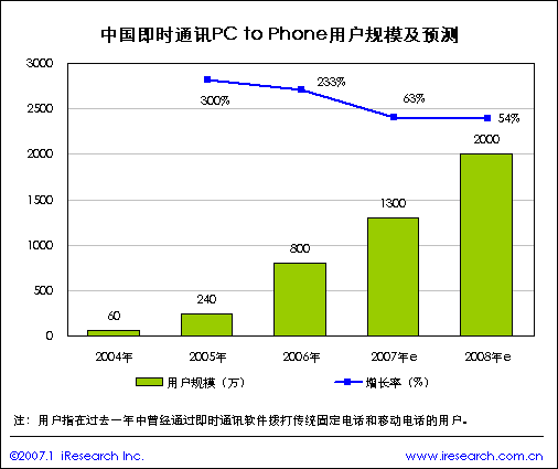 2004年10月以前中國使用PC to Phone的VOIP用戶非常少,且主要是使用國外運(yùn)營商提供的服務(wù),像Skype、TELTEL和dialpad等。隨著Skype登錄中國,一些國內(nèi)公司聯(lián)合地方的電信運(yùn)營商以“增值服務(wù)”的形式推出具有PC to Phone功能的即時(shí)通訊軟件。