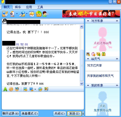 3月4日北京報(bào)道 如果你收到QQ好友發(fā)過(guò)來(lái)的撥打12590點(diǎn)播元宵節(jié)祝福的信息,千萬(wàn)不要信以為真,這僅是一些不良SP廠商斂財(cái)?shù)囊环N手段。