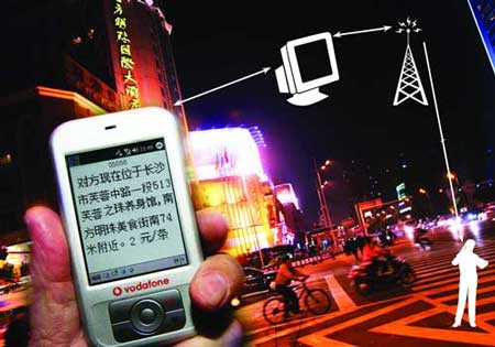 編輯你所要尋找對(duì)象的手機(jī)號(hào)碼發(fā)送到一個(gè)指定的號(hào)碼“05058”,就能立刻掌握機(jī)主所處的準(zhǔn)確位置——這聽(tīng)起來(lái)比重案組破案還要玄,但現(xiàn)在已成現(xiàn)實(shí)。