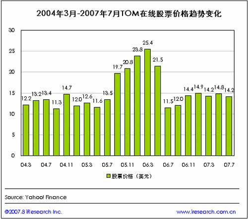 外界普遍認為TOM在線的退市是因為其母公司TOM集團對TOM在線股價長期被低估而感到不滿。盡管或許存在著股價被低估的可能性,但股價被低估并不與退市之間成必然的因果關(guān)系,與TOM在線經(jīng)營相似業(yè)務(wù)的空中網(wǎng),股價長期停留在15美元以下,近一年內(nèi)更是僅維持在10美元以下。