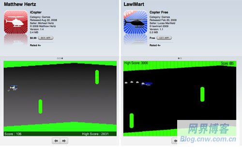 iCopter ,那么你也會(huì)喜歡免費(fèi)的 Copter ! 甚至還有與之對應(yīng)的另一種情況,開發(fā)者抄襲一個(gè)免費(fèi)應(yīng)用,然后把它做成付費(fèi)版——