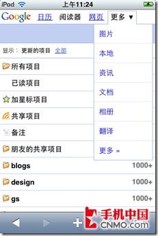 Google for iPhone的界面針對iPhone/ipod touch下的safari做了優(yōu)化,富客戶端在手持設備上,無論界面還是速度都達到近乎完美的地步。