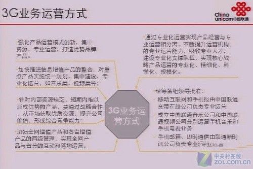 前不久,有論壇網(wǎng)友曝光了幾張聯(lián)通內(nèi)部3G培訓(xùn)所用的PPT截圖,其中不僅提到了聯(lián)通3G業(yè)務(wù)的運(yùn)營方式,2G/3G同名業(yè)務(wù)的關(guān)系,還再一次強(qiáng)調(diào)了聯(lián)通將重點(diǎn)推廣的3類九項(xiàng)主要3G業(yè)務(wù)。這和筆者前段時間為大家曝光的《官方Flash動畫:解析聯(lián)通3G九大特色業(yè)務(wù)》所提到的聯(lián)通9大特色3G業(yè)務(wù)保持一致。
