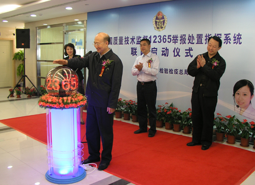 國家質(zhì)檢總局黨組副書記,副局長支樹平啟動12365舉報處置指揮系統(tǒng)全國聯(lián)網(wǎng)。