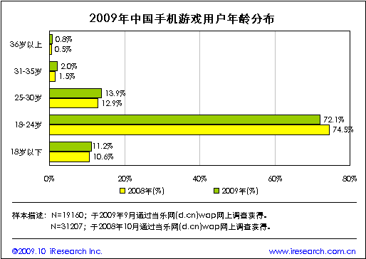 2009年手機(jī)游戲用戶(hù)以男性和青少年為主