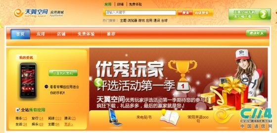 四川電信天翼空間應(yīng)用商城公測(cè)版的上線(xiàn)公告中稱(chēng),該商城不僅為廣大用戶(hù)提供手機(jī)應(yīng)用下載,更為手機(jī)應(yīng)用開(kāi)發(fā)商提供在線(xiàn)銷(xiāo)售的平臺(tái)。四川電信應(yīng)用商城目前推出了主要11類(lèi)應(yīng)用,包括游戲、主題、娛樂(lè)、生活、閱讀、通訊、商務(wù)、旅行、教育、財(cái)經(jīng)、工具;軟件平臺(tái)包括WindowsMobile、 Symbian、Java、widget、BlackBerry等。
