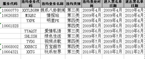 | 20家SP 43項業(yè)務(wù)被下線 雷霆萬鈞多業(yè)務(wù)上黑榜 2010-03-08 |