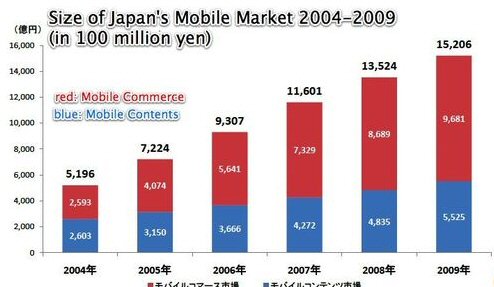 據(jù)國外媒體報(bào)道,日本總務(wù)省上周公布了一份移動(dòng)增值服務(wù)市場(chǎng)調(diào)查報(bào)告。報(bào)告顯示,包括移動(dòng)廣告在內(nèi),日本移動(dòng)增值服務(wù)市場(chǎng)份額去年增長12%,至1.52萬億日元(折合173億美元)。
