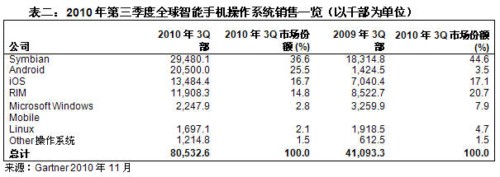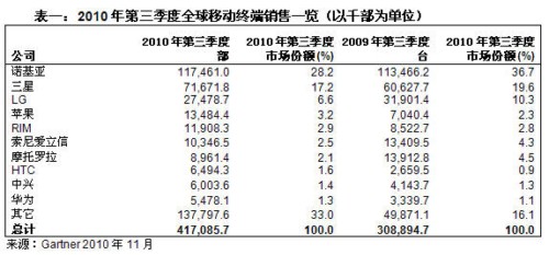 Gartner:2010年第三季度智能手機銷售增長96%