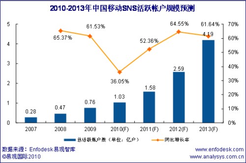 中國移動SNS活躍帳戶2013年將達(dá)4.19億