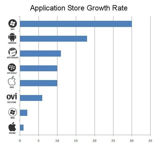 專(zhuān)注于App Store發(fā)展得研究者Distimo昨天公布了一份有關(guān)手機(jī)應(yīng)用程序商店的市場(chǎng)報(bào)告,報(bào)告顯示W(wǎng)indows Phone 7的增長(zhǎng)速度高達(dá)30%。