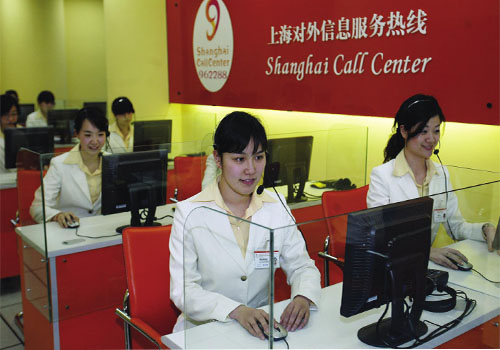 東方網(wǎng)5月1日消息:據(jù)《勞動(dòng)報(bào)》報(bào)道,“Hello。ㄓ⒄Z(yǔ):你好)”、“GutenTag(德語(yǔ):你好)!”、“Bonjour(法語(yǔ):你好)!”……這里就像個(gè)小小的聯(lián)合國(guó),可以聽(tīng)到15種語(yǔ)言;這里又像“女兒國(guó)”,接聽(tīng)電話的都是80后的姑娘;這里就是上海對(duì)外信息服務(wù)熱線962288,365天、24小時(shí)接聽(tīng)外籍人士的問(wèn)詢電話。