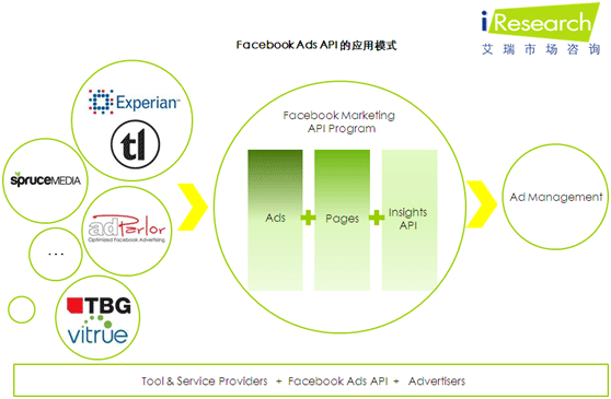 iResearch艾瑞咨詢整理Insidefacebook最新行業(yè)動態(tài)時發(fā)現(xiàn),F(xiàn)acebook于2011年8月1日正式宣布開放廣告接口(Ads API)應(yīng)用服務(wù),通過在該接口上投放第三方的高效廣告管理工具,廣告主甚至可以保證數(shù)百萬的復(fù)雜媒體營銷計劃正常運營并實現(xiàn)廣告管理的高效優(yōu)化。到目前為止,F(xiàn)acebook只為少數(shù)有限的第三方廣告管理工具供應(yīng)商提供了準(zhǔn)入接口,包括Techlightenment(近日被Experian收購)、TBG Digital(與Vitrue達(dá)成協(xié)作)、Spruce Media、AdParlor等。此外,F(xiàn)acebook也建立了廣告接口營銷項目計劃,通過收取廣告、頁面、廣告接口洞察等相關(guān)費用來實現(xiàn)盈利。隨著更多的第三方工具與服務(wù)供應(yīng)商進(jìn)入Ads API市場,越來越多的當(dāng)?shù)匦⌒蛷V告主也有望享受低成本的廣告優(yōu)化管理服務(wù)。