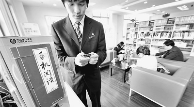 2010年4月16日下午,國(guó)內(nèi)首個(gè)G3閱覽室在杭州市下城區(qū)圖書館內(nèi)建成并免費(fèi)開放,實(shí)現(xiàn)了移動(dòng)信息技術(shù)與公共圖書館的有機(jī)結(jié)合。圖為讀者正在G3閱覽室里通過G3手機(jī)閱讀器免費(fèi)閱讀。