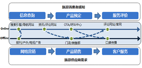 從旅游供應(yīng)商的維度出發(fā),缺失的兩個環(huán)節(jié)往往對其訂單生成有決定性意義。一方面是在網(wǎng)民獲取旅游信息的環(huán)節(jié)借助互聯(lián)網(wǎng)展示及搜索廣告進(jìn)行品牌曝光及活動營銷,提升企業(yè)的品牌知名度及銷售轉(zhuǎn)化率。另一方面是在網(wǎng)民針對旅游服務(wù)進(jìn)行評價及分享的環(huán)節(jié)及時解答服務(wù)疑問引導(dǎo)評論主題,通過口碑因素提高老用戶APRU值并帶來新用戶。
