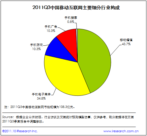 2011Q3中國(guó)移動(dòng)互聯(lián)網(wǎng)市場(chǎng)規(guī)模達(dá)108.3億元