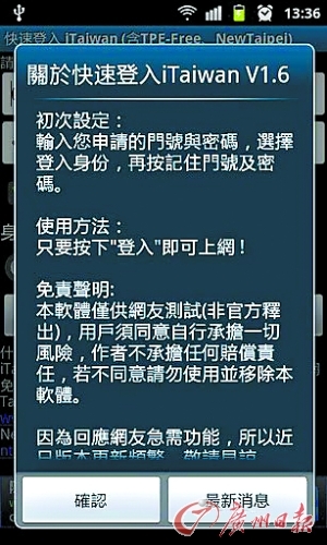 圖:臺(tái)灣地區(qū)正推廣iTaiwan免費(fèi)網(wǎng)絡(luò)服務(wù)