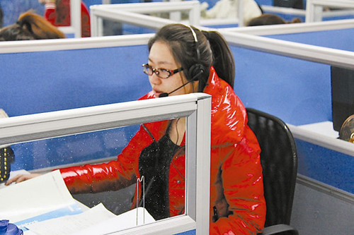 趙曉薇(化名)是拉手網(wǎng)北京客服部的一名工作人員,每天早上8:30,她會(huì)準(zhǔn)時(shí)戴上耳麥,開始一天忙碌的工作!疤孛Γ娫挾嗟臅r(shí)候,一天得有300個(gè)來電!睍赞笔且粋(gè)語氣平和,聲音甜美,笑容溫和的女孩子。正說著,她就趕緊接通了正在鈴鈴作響的電話,開始熱情、耐心地為用戶釋疑解困。